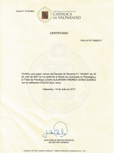 Psicologa de la Pontificia Universidad Catolica de Valparaiso, con experiencia en ambitos publico y privado.